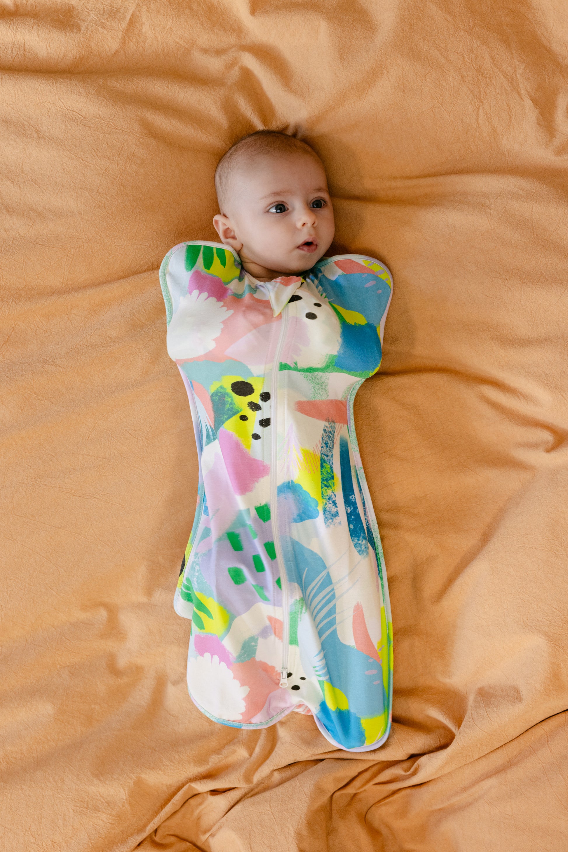 Effet apaisant naturel : l’emmaillotage enveloppe bébé et limite le réflexe de Moro, souvent responsable des réveils
