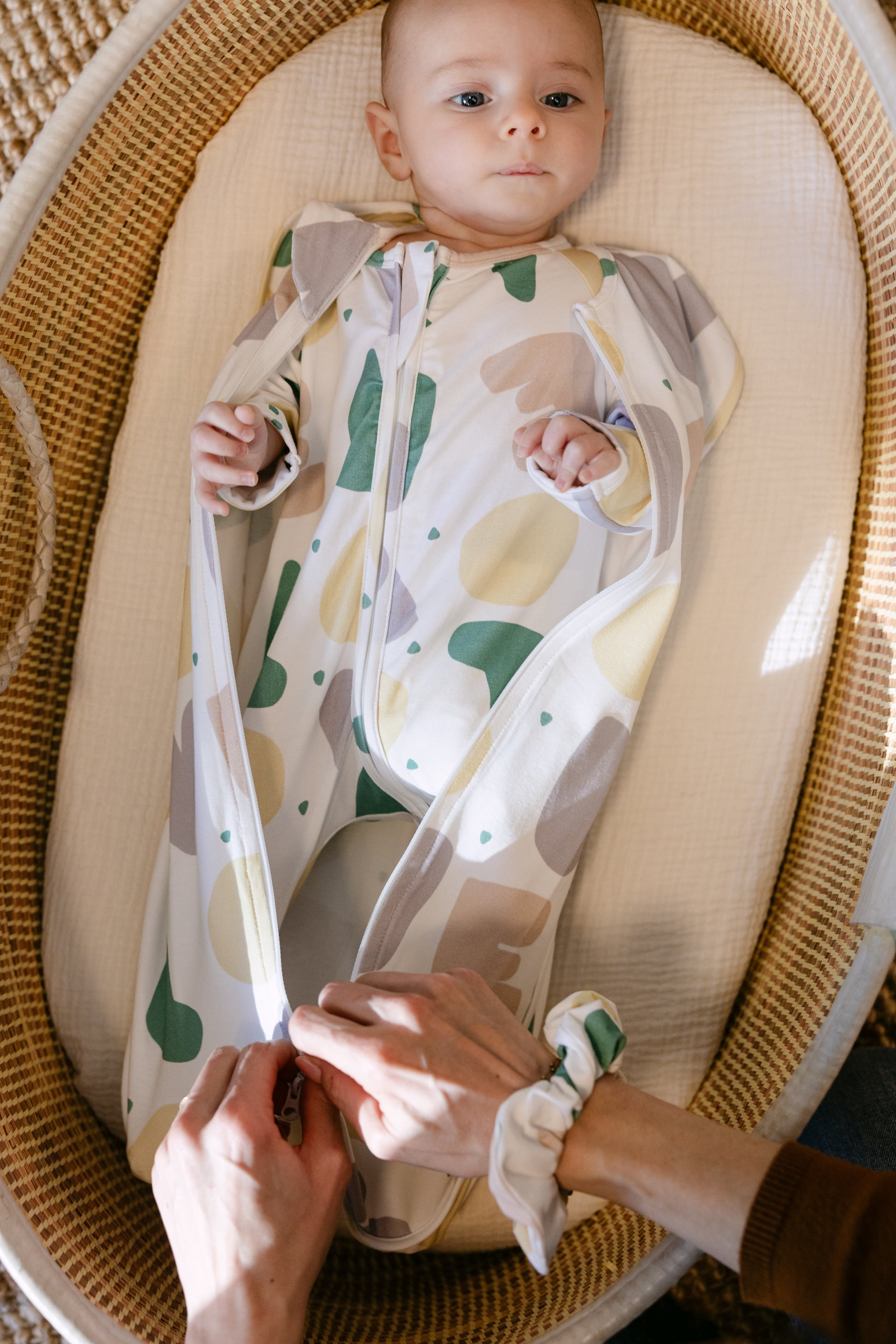 ✔ Réduit les réveils liés au réflexe de Moro : l’emmaillotage recrée un effet cocon proche des sensations in utero, pour apaiser bébé